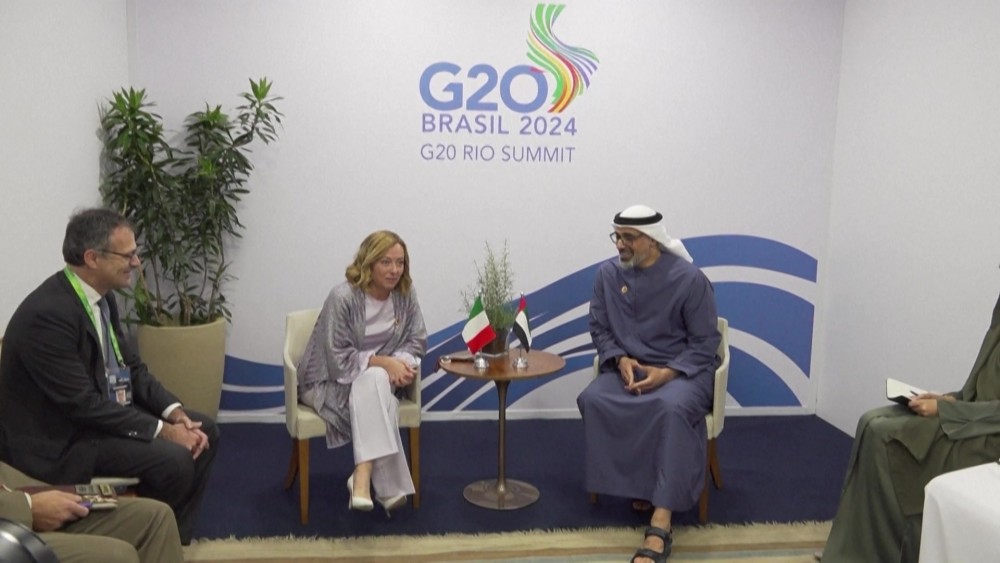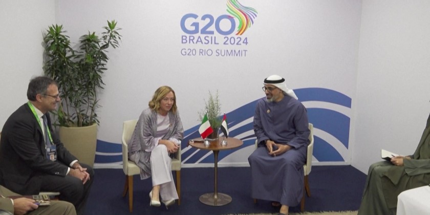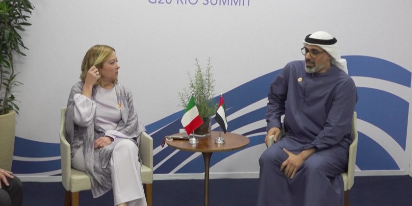 Italian Prime Minister Meloni meets Abu Dhabi Crown Prince Zayed Al Nahyan on Monday during G20 summit in Rio. The meeting provided an opportunity to discuss bilateral relations, with particular reference to investment opportunities and economic cooperation between the two nations in the fields of energy, major connection infrastructure and artificial intelligence.
