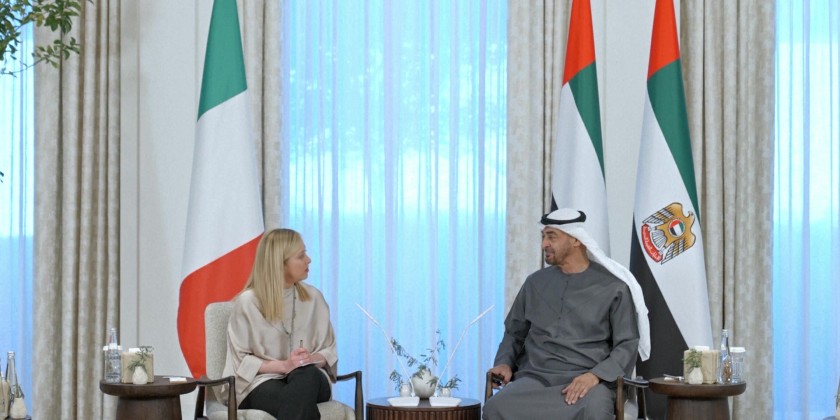 UAE president Sheikh Mohamed Bin Zayed met the Prime Minister of Italy Giorgia Meloni on Saturday at Al-Shati Palace in Abu Dhabi.