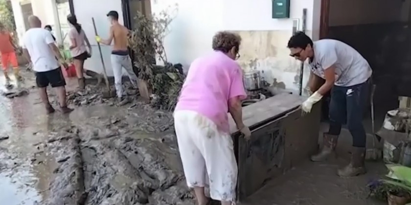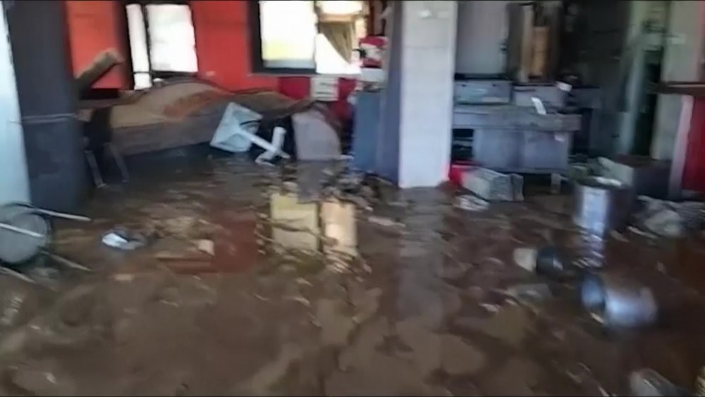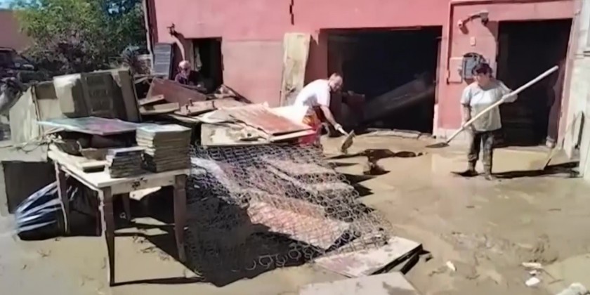 Emergency workers and locals in Italy began cleaning up the debris left after flooding on Friday. Mud and debris was strewn across streets and properties were left severely damaged after the floodwaters receded.