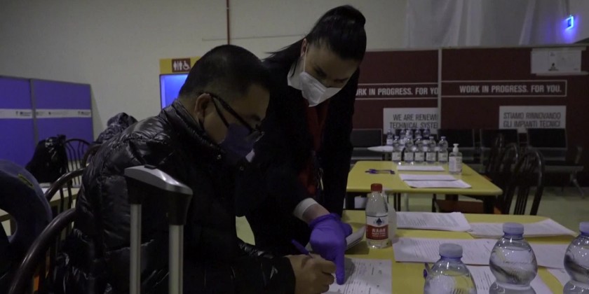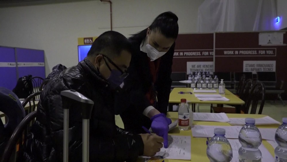 Italy on Wednesday made COVID tests mandatory for all airline passengers arriving from China.The first tests inside Rome's Fiumicino airport were taken on passengers arriving with a flight from Hangzhou Xiaoshan Airport in Eastern China.