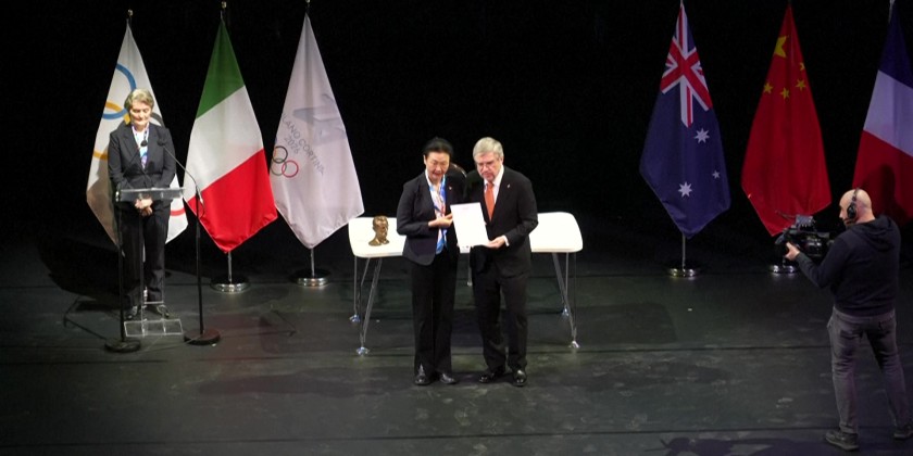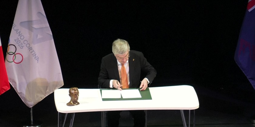 Thomas Bach, IOC president (male, English, 49 sec): "You are all setting the stage for the world's best winter sport athletes in an excellent way. Italy is ready, Italy is ready to write the next chapter of its great Olympic history. It is therefore, my great honour and pleasure to invite the best winter sport athletes of the world to come together in Italy to celebrate the Olympic Winter Games Milano Cortina 2026 and to celebrate the Olympic motto Faster, Higher, Stronger, Together."