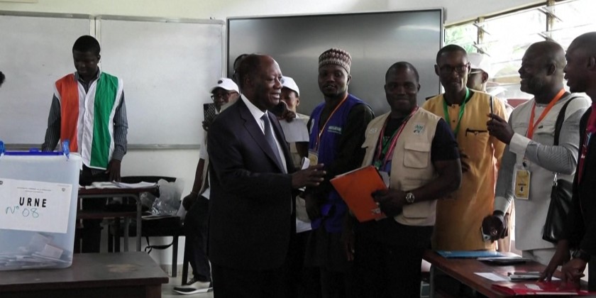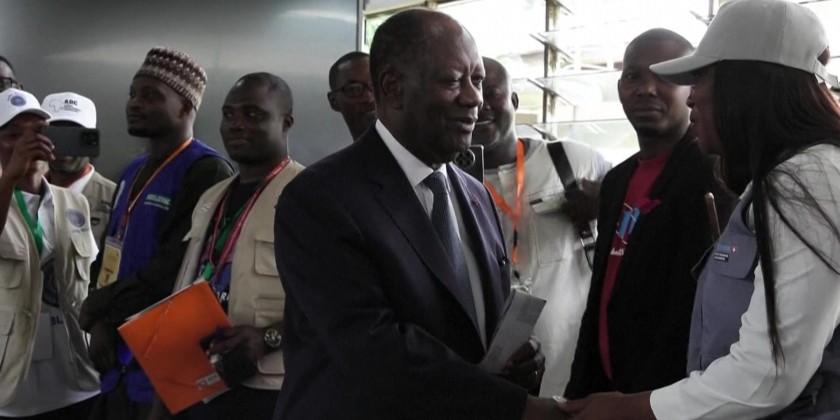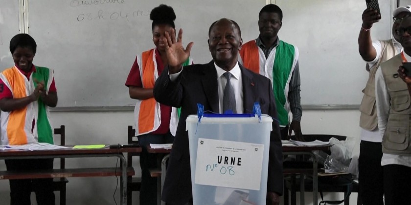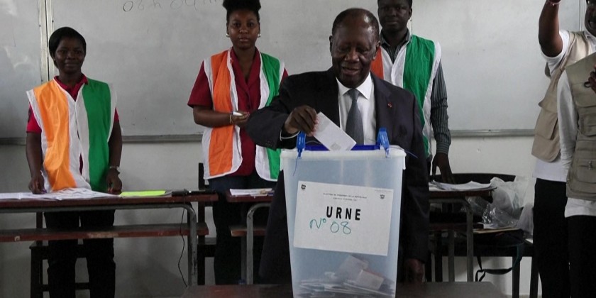 Ivory Coast President Alassane Ouattara cast his ballot on Saturday as voters headed to the polls for the presidential election.