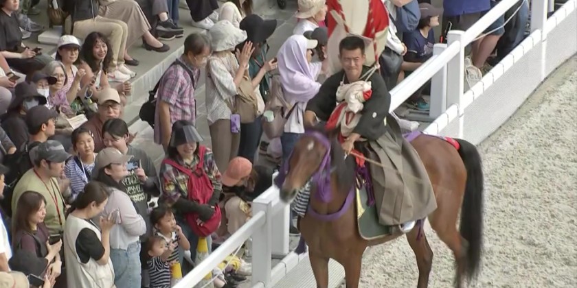 The event featured a demonstration of traditional equestrian skill by members of an Imperial horsemanship team. An indoor event featured a performance by Tomoto Kazuma, an Olympian who won a bronze medal in a team event in the Paris Games last year, as well as high-school students working on their riding.