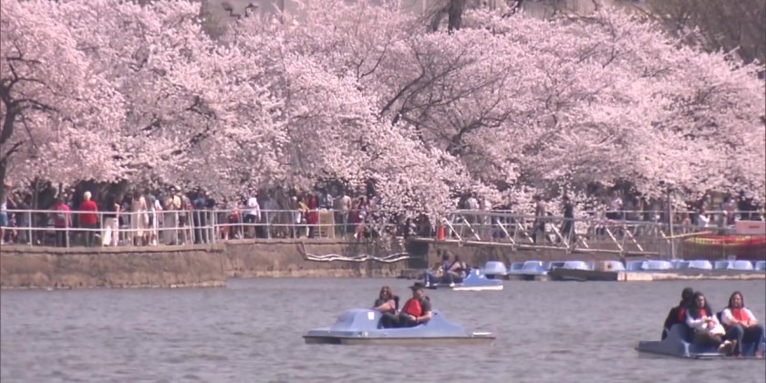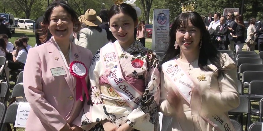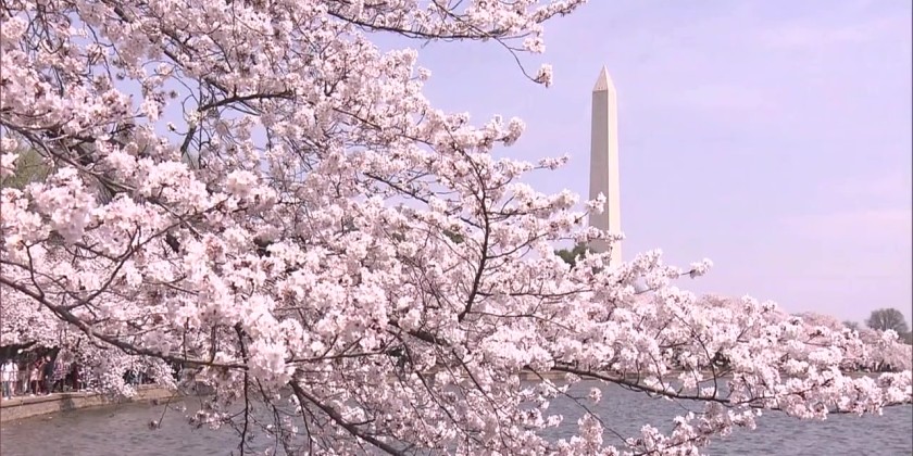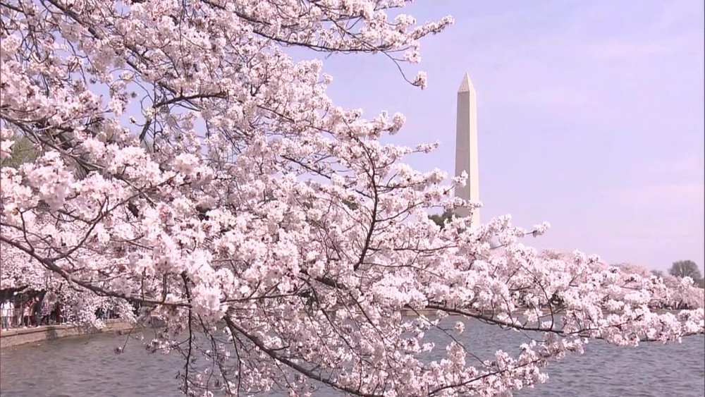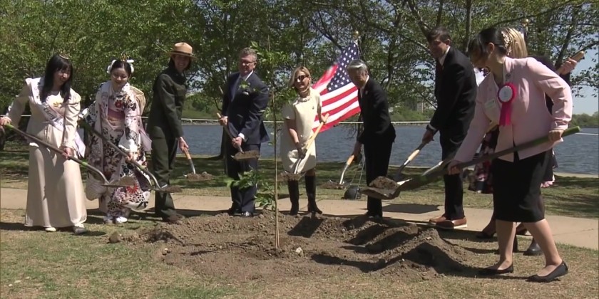 Japan donated 250 cherry tree saplings to commemorate the 250th anniversary of the founding of the US. Three of the saplings were planted in a park along the Potomac River, an area well-known for its thousands of cherry trees that bloom in the spring.