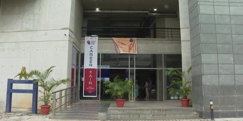 Japanese companies held a job fair for students at Indian Institute of Technology Hyderabad in the hope of recruiting talent in IT and other fields on Sunday. It was organized by the Japan External Trade Organization, or JETRO.