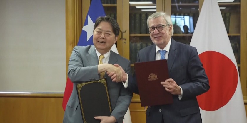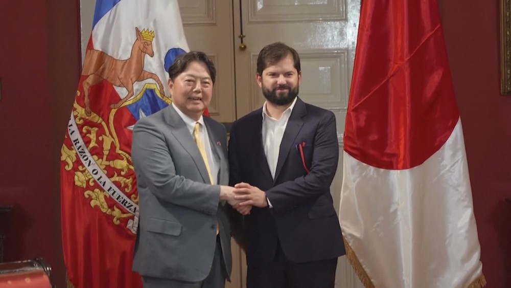 Japan foreign minister Yoshimasa Hayashi met Chile's president Gabriel Boric on Thursday. Before their meeting in La Moneda, seat of Chile's government, Hayashi signed bilateral agreements with his local counterpart Alberto van Klaveren.