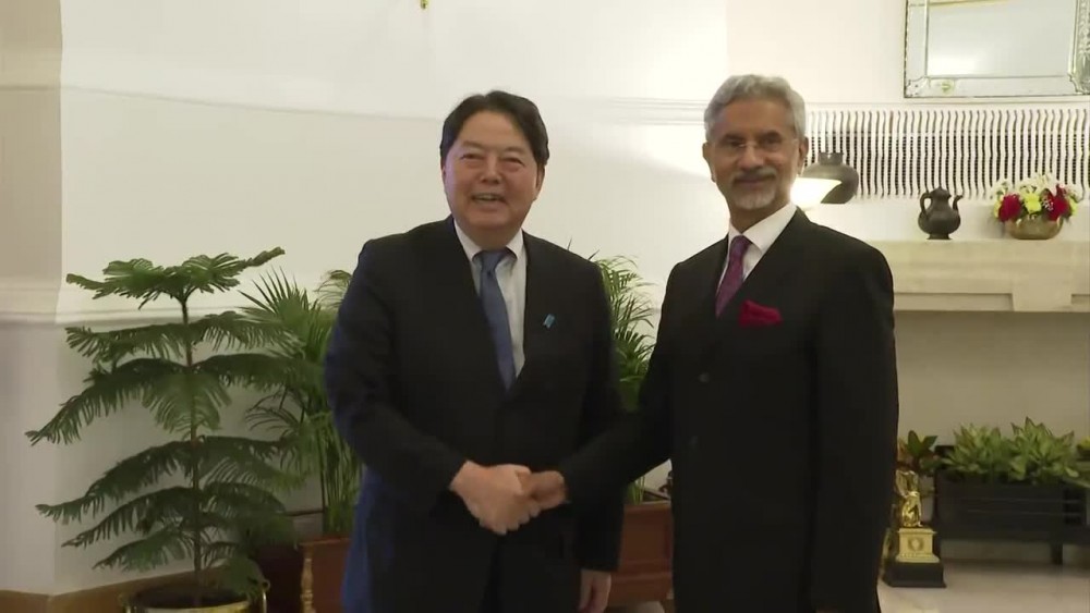 Japan's Foreign Minister Hayashi Yoshimasa met India's External Affairs Minister Subrahmanyam Jaishankar in New Delhi on Thursday. They confirmed that as the two countries share basic values and strategic interests, they will work together to carry out a new plan to advance a free and open Indo-Pacific.