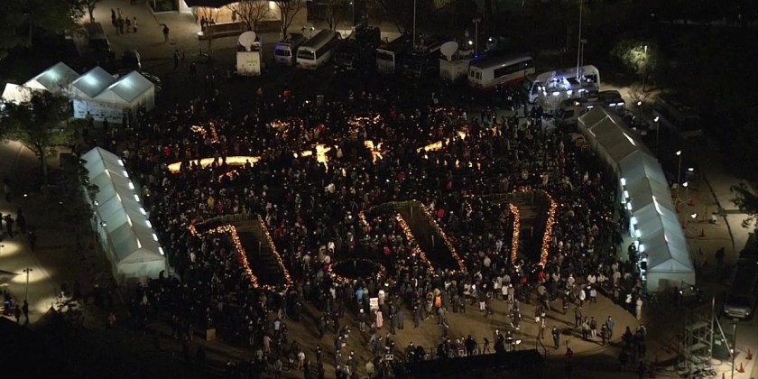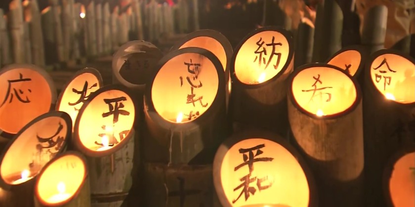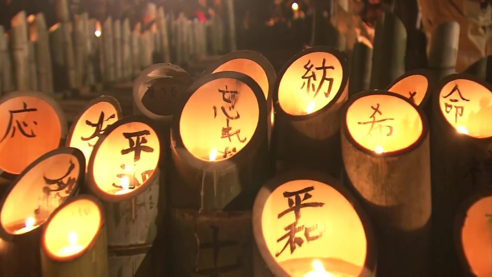 The magnitude-7.3 quake struck before dawn on January 17, 1995 in the western prefecture of Hyogo, sparking fires and destroying scores of buildings. People have placed lanterns at a park in Kobe to form the date 1-17 and the Japanese word "tsumugu," which means to weave.