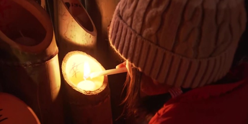 The display is intended to express their will to move forward while passing on lessons from the disaster. A moment of silence was observed on Saturday at 5:46 a.m., the exact time of the quake.