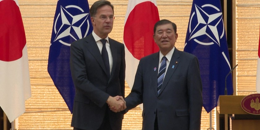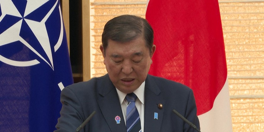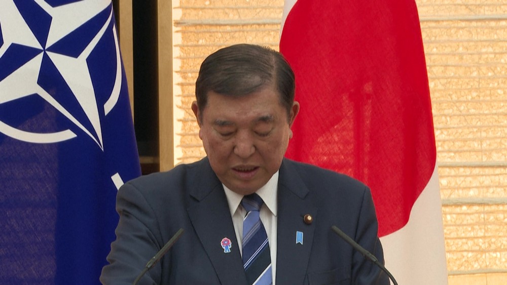At a joint news conference, Ishiba said a strong NATO benefits Japan. He also said he hopes to elevate Japan-NATO cooperation to a new height.