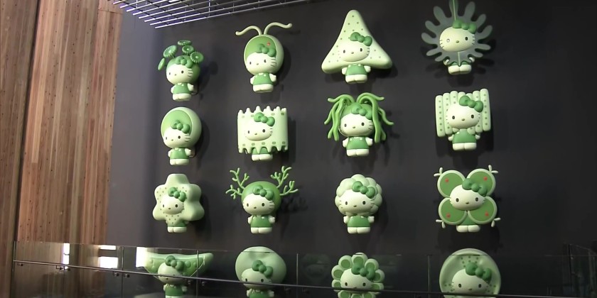 The iconic Hello Kitty mascot, dressed in various types of seaweed, is featured prominently to promote algae as a potential solution for fuel and food security. Interior work is expected to be completed by the end of February.