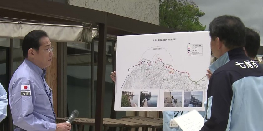 Japan’s Prime Minister Kishida inspected Wakura Onsen in Nanao City on Monday. The popular hot spring resort was greatly damaged in the New Year’s Day earthquake.