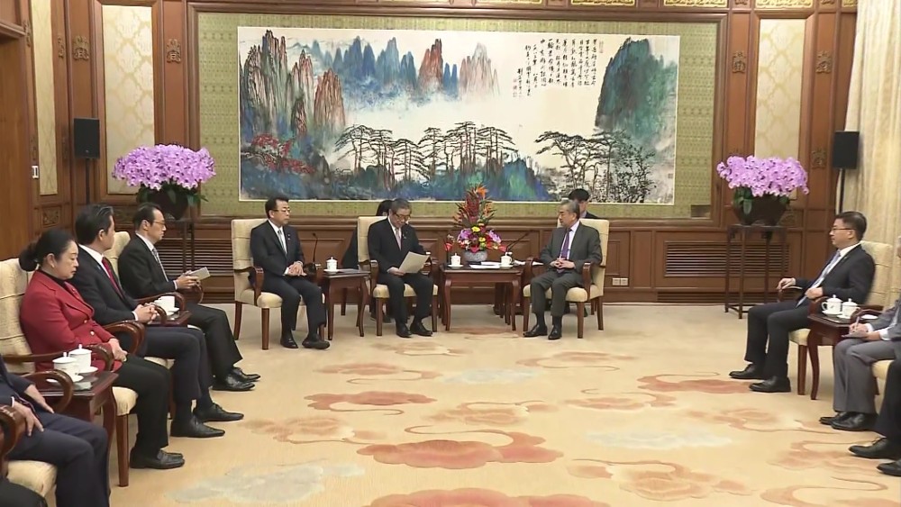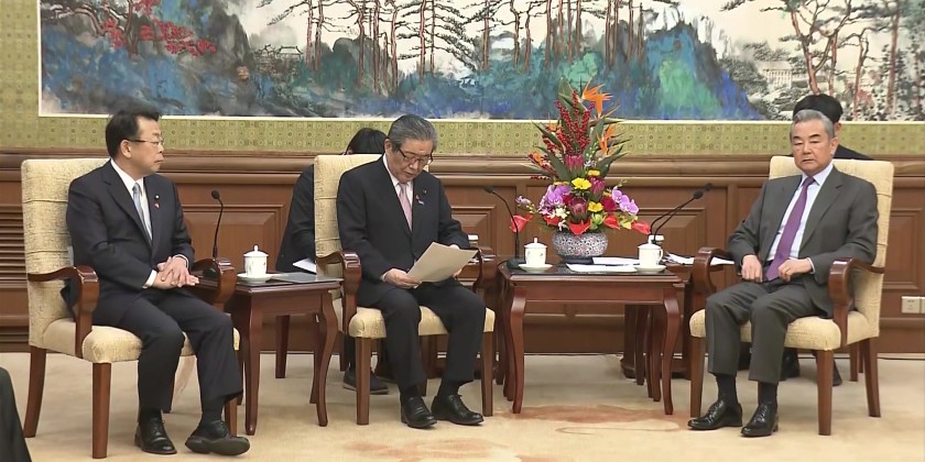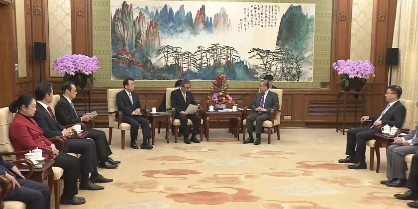 LDP Secretary-General Moriyama Hiroshi and his counterpart of the Junior Coalition Partner Komeito, Nishida Makoto, met with Foreign Minister Wang Yi in Beijing on Tuesday.
