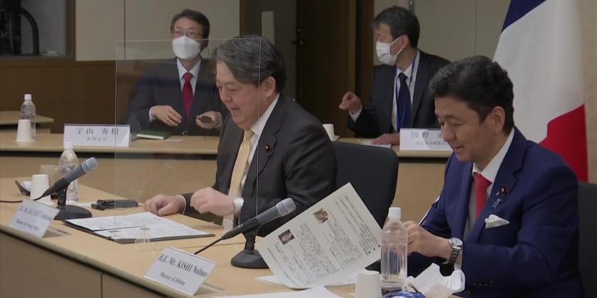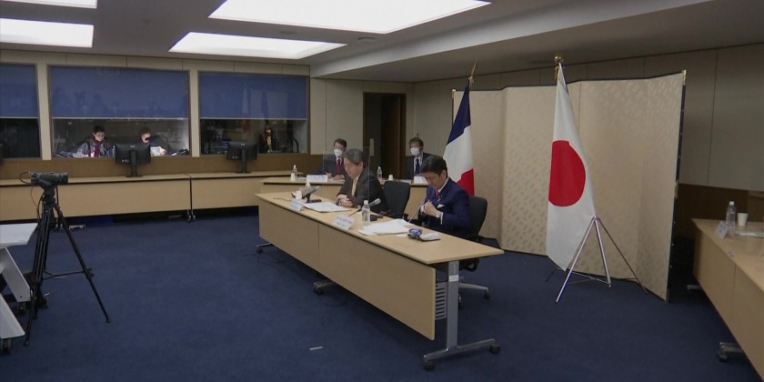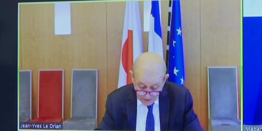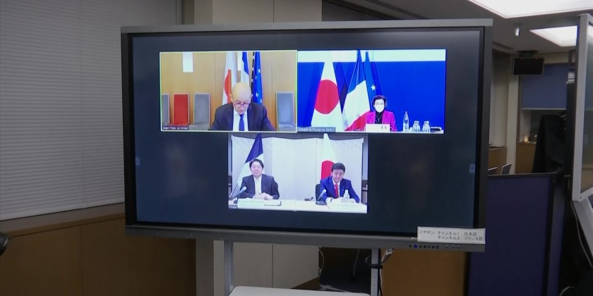 Foreign Minister Yoshimasa Hayashi and Defense Minister Nobuo Kishi met over a video conference with Jean-Yves Le Drian and Florence Parly.