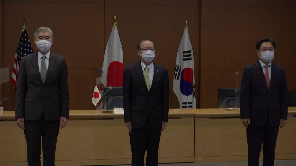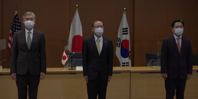 Japan, the United States and South Korea held a trilateral meeting Tuesday to discuss the issue of North Korea.