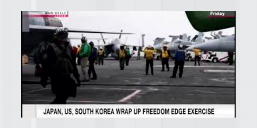 Defense personnel from Japan, the United States and South Korea have wrapped up their newly launched joint exercise. The three-day Freedom Edge exercise that ended on Saturday was conducted in the East China Sea and elsewhere.