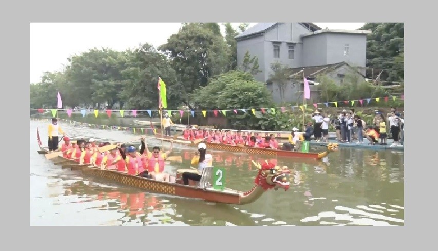 A traditional Chinese dragon boat race was held in China to promote exchanges between Japan and China. A total of about 450 employees of Japanese affiliated firms and local governments took part in the race on Saturday in Foshan, Guangdong Province.
