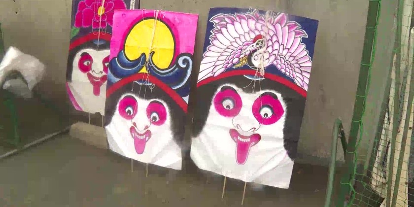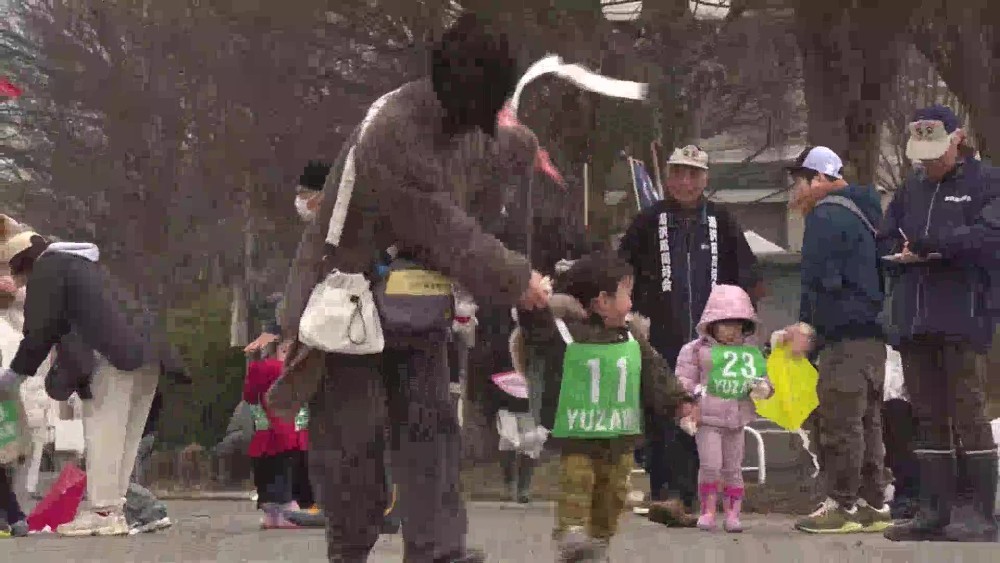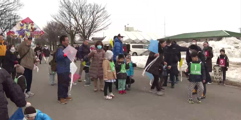 About 130 people gathered in Yuzawa City for the event organized by a group of kite enthusiasts. Some brought traditional or hand-made kites. They included Yuzawa City’s Managu kite, known for its distinctive design with large eyes, and the Tsugaru kite adorned with colorful pictures of samurai warriors.