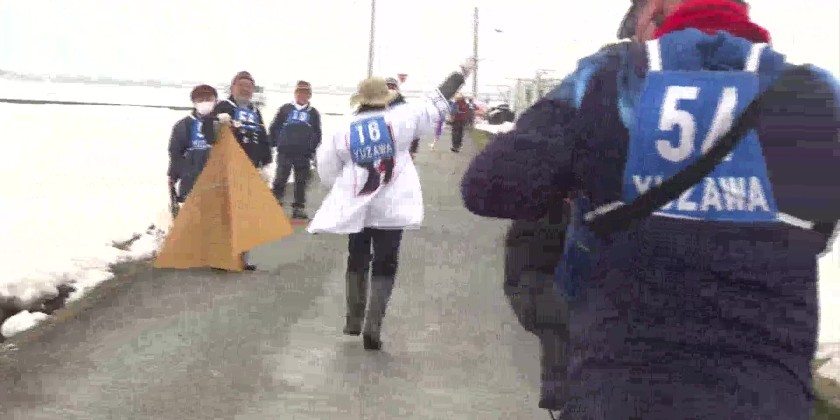 People in Akita Prefecture, northeastern Japan, have flown kites in a festival to mark the first signs of spring as the snow begins to melt on Sunday.