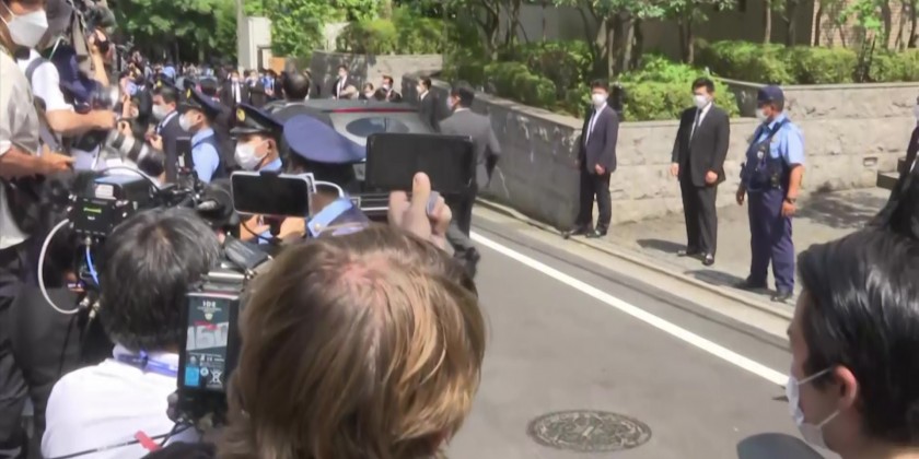 On Saturday, a hearse carrying the body of Shinzo Abe arrived at the assassinated former Japanese prime minister's home in Tokyo. Abe was assassinated Friday on a street in western Japan by a gunman who opened fire on him from behind as he delivered a campaign speech.