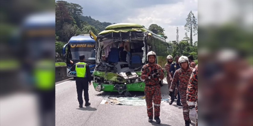 Thirteen people, including Japanese tourists, were injured when a tour bus crashed into the rear of trailer in an incident at KM 230.3 of the North-South Expressway near Taiping, in Malaysia on Thursday evening.