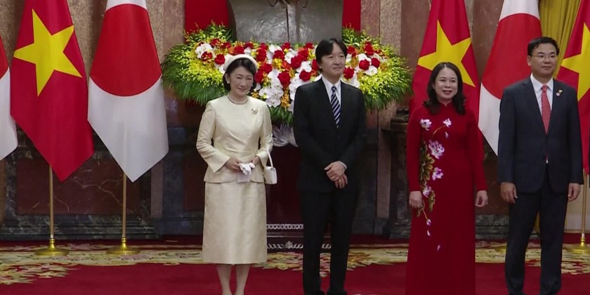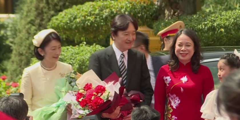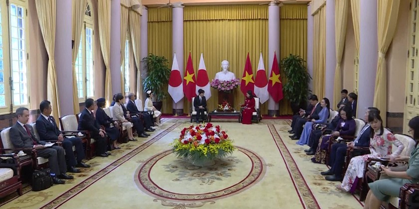 Japanese Crown Prince Akishinoand his wife, Crown Princess Kiko, meet Vietnamese Vice President VoThi Anh Xuan during their five-day visit to Viet Nam.
