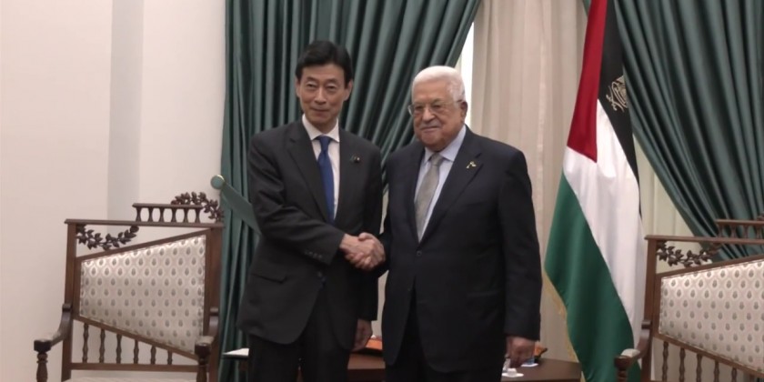 Nishimura also met with Palestinian President Mahmoud Abbas in the West Bank city of Ramallah when Abbas asked more Japanese companies operate in the territory. Nishimura responded that Japan will promote corporate exchanges between the both sides.