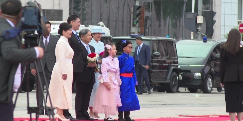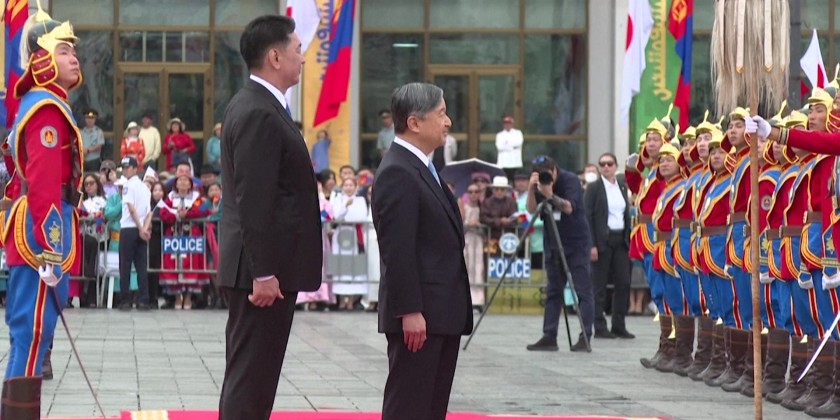 Japan's Emperor Naruhito and Empress Masako Tuesday attended a welcoming ceremony in Mongolia's capital Ulaanbaatar before meeting with President Ukhnaa Khurelsukh and his wife at the State Palace.