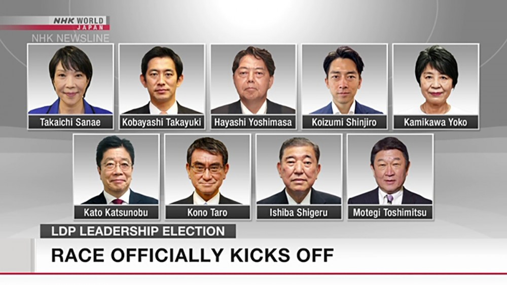 The race to lead Japan's main governing Liberal Democratic Party has officially kicked off. Nine people are running, a record high under the current system.