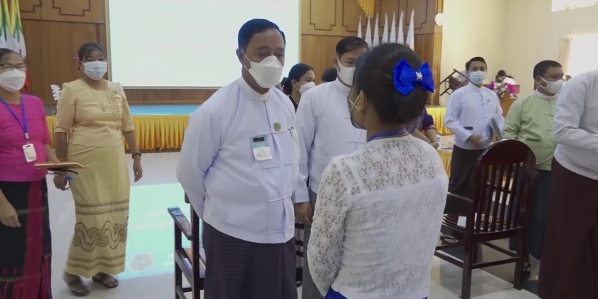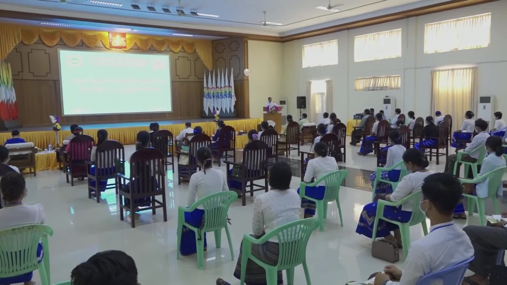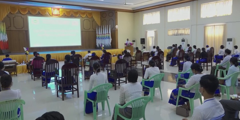 This job skill training is opened as the staffs of the Department are serving the duties of the staffs as well as duties of the instructors; they are required to be skillful in office works as well as proficient in relevant subjects to instruct others. The training course is attended by 45 trainees from head office, Lacquer ware Technology College, Saunder Weaving & Vocational Institute and 13 Weaving and Vocational Training Schools from Regions and States.