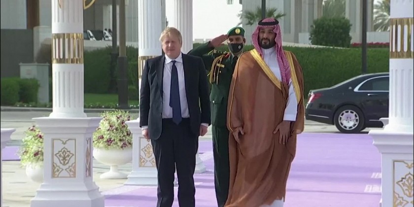 British Prime Minister Boris Johnson arrived in Saudi Arabia on Wednesday where he held talks with Saudi Crown Prince Mohammed Bin Salman.
