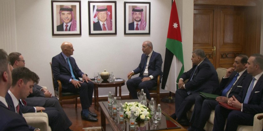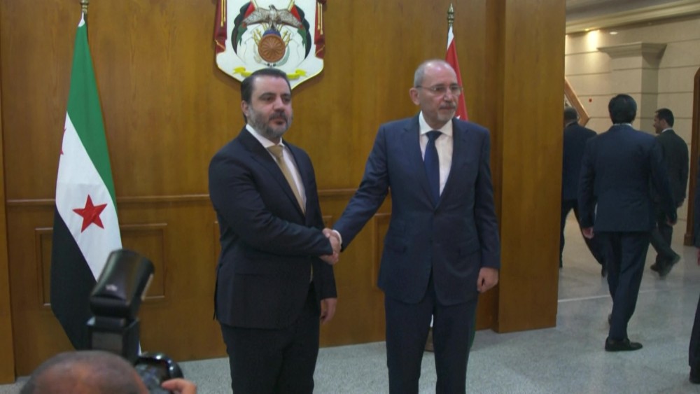 Jordanian Foreign Minister Ayman Safadi meets with his Syrian counterpart Asaad al-Shaibani and US special envoy for Syria Thomas Barrack ahead of an Amman-hosted meeting between the United States and Syria to discuss the situation in the war-ravaged country and explore reconstruction efforts.