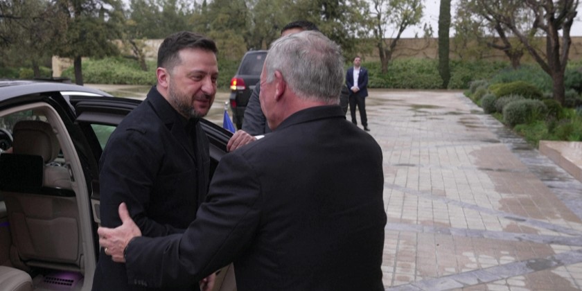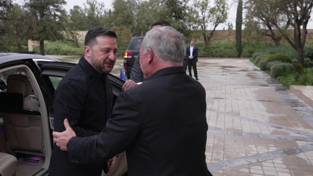 Jordan's King Abdullah II met visiting Ukrainian President Volodymyr Zelensky on Sunday to discuss regional developments and bilateral ties, according to a statement from the Royal Hashemite Court. The two leaders also reviewed relations and ways to expand practical cooperation. Zelensky, on a Middle East tour, signed defense cooperation agreements with the United Arab Emirates and Qatar.