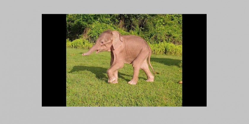 The baby elephant has 7 out of 8 characteristics of the white elephant such as pearly eyes, banana branch-shaped back, white-colored fur, pink-coloured skin, five toenails each on the forelegs and hind-legs, wide and big ears and so on.