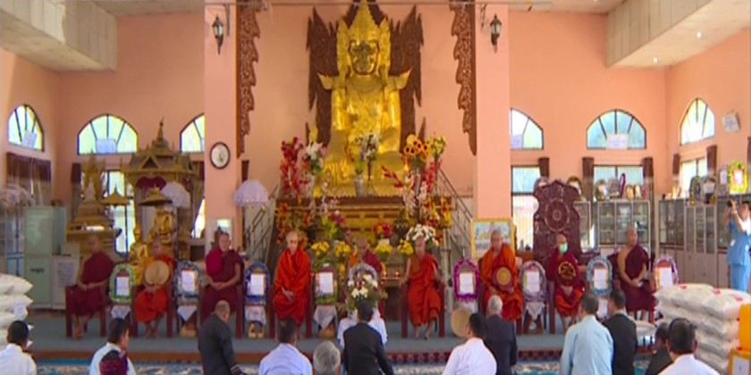 At noon, the SAC members and party paid homage to Presiding Sayadaw Bhaddanta Ketumala of the Wuntho Monastery at Ann Taw Shin Monastery of Myitkyina Township and donated rice bags and cooking oil. Then, they went to St Kolanban Catholic Church in the Aungnan Ward of Myitkyina and cordially met pastors and the bishop and donated fruits and cash to the church.