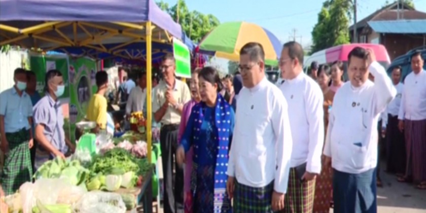Member of the State Administration Council Daw Dwe Bu made inspections in Kachin State on Friday. In Myitkyina Township, the SAC Member inspected the basic foodstuffs sale at fair prices in ShweNyaungPin Ward Market and gave necessary instructions.