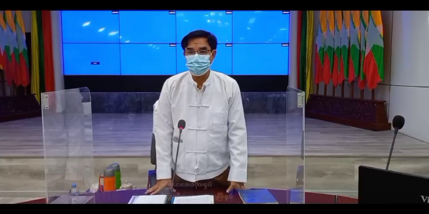 The attendees are requested to discuss collectively and give suggestions regarding the findings of ground inspection on palace buildings.  Next, the Bago Region Special Construction Unit-3 deputy director U Tin Hla clarified the status of inspection on the palace buildings with Power Point presentations and the region ministers, departmental officials and civil archeologists discussed and gave necessary suggestions.