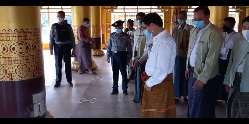 Afterward, the chief minister U Myo Swe Win together with region government ministers, regional and district level departmental officials and civil archeologists conducted ground inspection of Myaynan Pyathat hall and Bamarathana Throne hall in the Kanbawzathadi Palace compound.