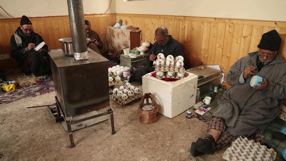 Artisans in Indian-administered Jammu and Kashmir are finalizing papier-mâché products for the festive season, fulfilling international orders despite challenges from U.S. tariffs. The region’s craftsmen produce Christmas decorations, primarily hand-painted balls in sizes ranging from one to five inches, as well as items like elephants and boxes.