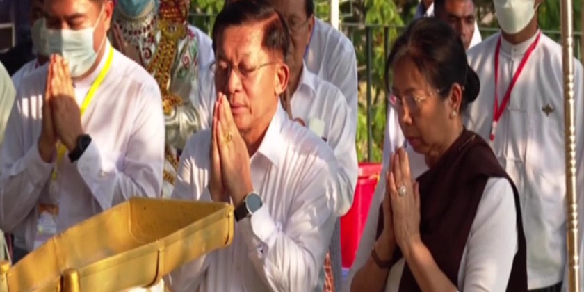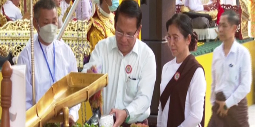 After performing the religious rituals, they poured water to the Bodh trees and offered scented water. Likewise, Kason Water Pouring Ceremony was held at Lawka Chantha Sutaungpyae Pagoda in Zeyathiri Pagoda. Under the auspices of Chairman of the State Administration Council Commander-in-Chief of Defence Services Senior General Min Aung Hlaing and wife, Vice Chairman of the State Administration Council Deputy Commander-in-Chief of the Defence Services Commander-in-Chief (Army) Vice Senior General Soe Win and wife poured water to the Maha Bodhi trees, together with the senior military officer , military officers, Tatmadawmen and family members.