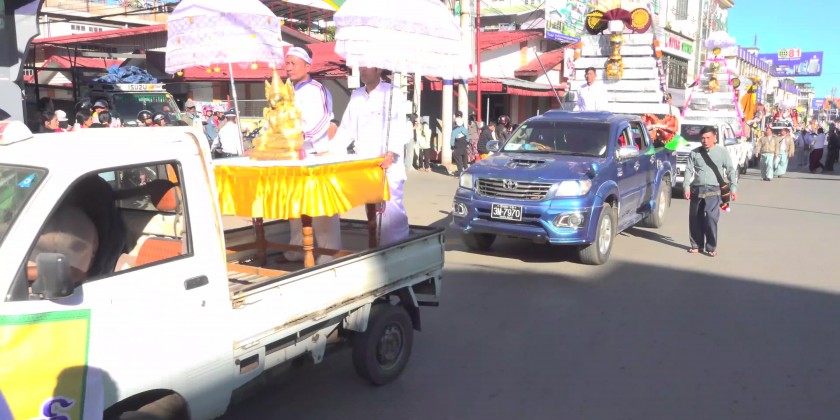 The Chief Minister and wife and many other concerned officials led the procession of Padaethapins or Offertories Stands, donated by Shan State Chief Minister’s family, Shan State Government, departmental officials and well-wishers.