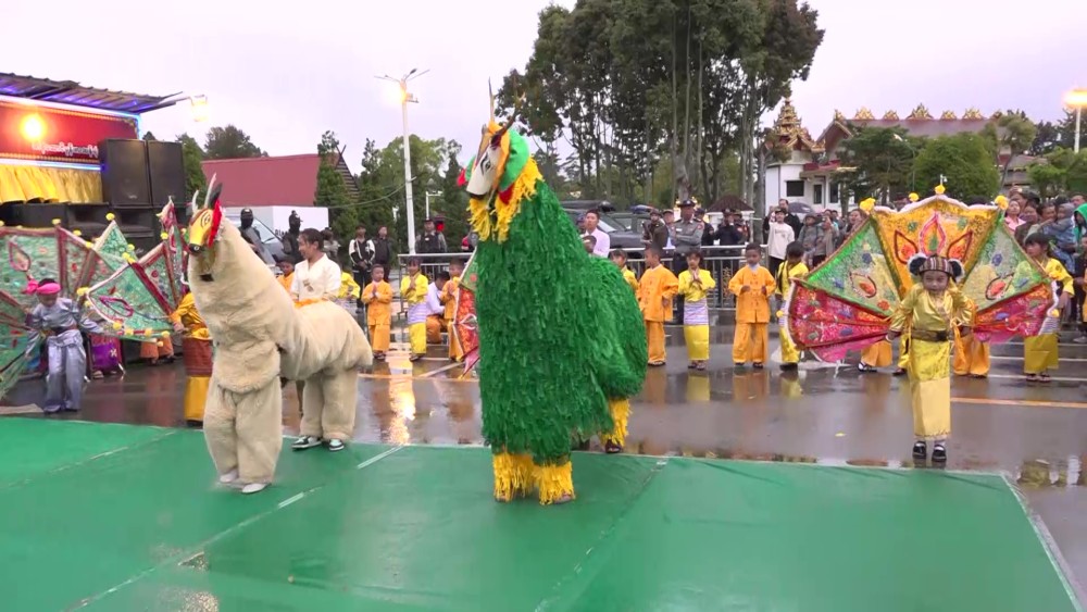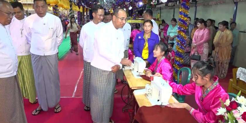 The State Chief Minister, the Commander, and the State Minister for Security and Border Affairs presented cash awards of honor to the Kinnari, Kinnara, and Toe Nyar dance troupes from the Shan Literature and Culture Association. Subsequently, the State Chief Minister and his wife, the Commander and his wife, and other officials toured the various sacred weaving looms, observing and encouraging the progress of the Mathoe-Thingan or Non-Stale Robe weaving.
