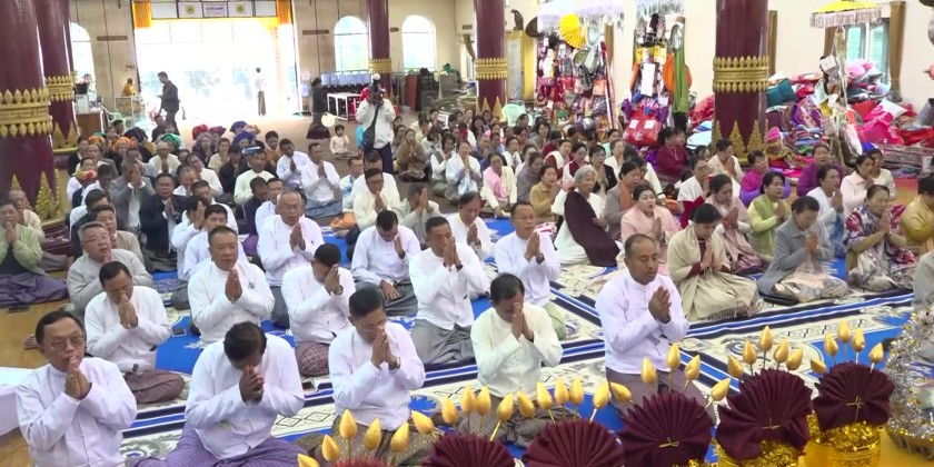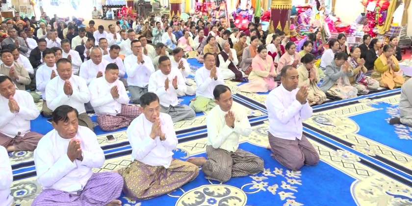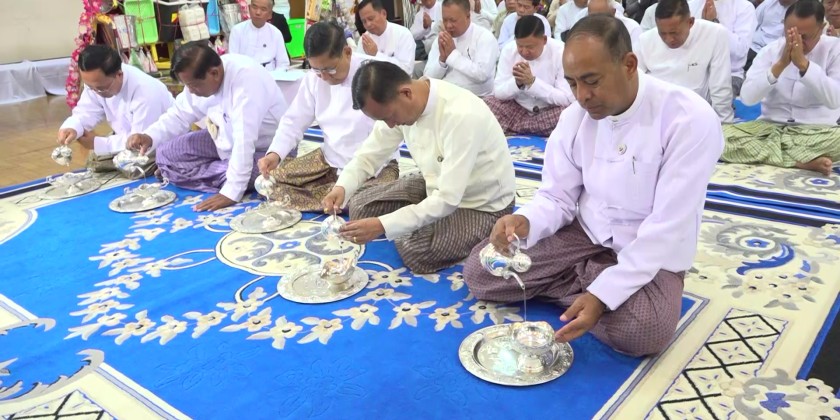 Afterwards, they attended the 75th Collective Maha Kathina Robe Offering Ceremony, organized by the Shan State Government, at the Atulamarazein Hsu-Taung-Pyae Buddha Image's City Central Dhamma Hall. There, they performed the water-pouring ceremony to share the merits and offered the midday meal to the members of Sangha, it’s reported.