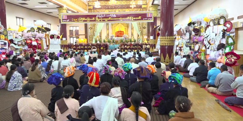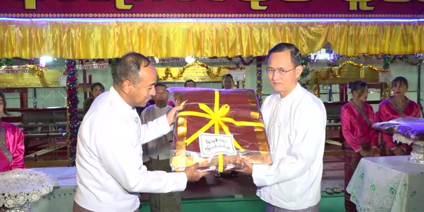 On November 4th at 4:00 AM, at the Sula Mani Lawka Chantha Pagoda in Taunggyi, a ceremony led by Shan State Chief Minister U Aung Aung was held to offer the Mathoe-Thingan or Non-Stale Robe to the four Buddha images inside the pagoda.