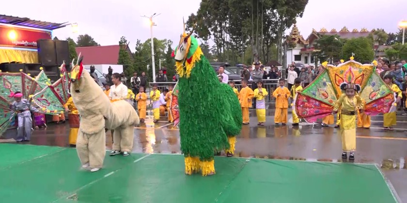 The Mathoe-Thingan or Non-Stale Robe Weaving and Offering Ceremony at the Taunggyi Tazaungdaing Festival was held on November 3rd at 5:00 PM on the platform of the Sula Mani Lawka Chantha Pagoda in Taunggyi.