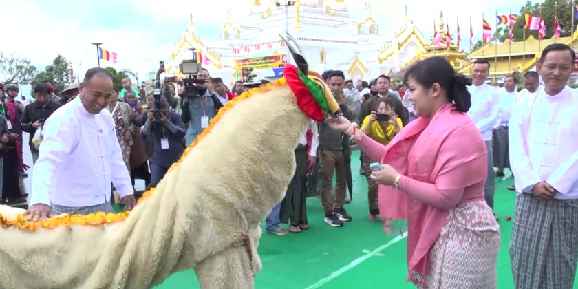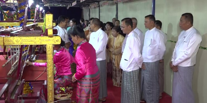 The Mathoe-Thingan weaving ceremony was inaugurated by Shan State Chief Minister U Aung Aung and his wife, Commander of East-Command Brigadier General Kyaw Naing Oo and his wife, and State Minister for Natural Resources U Sai Leik.