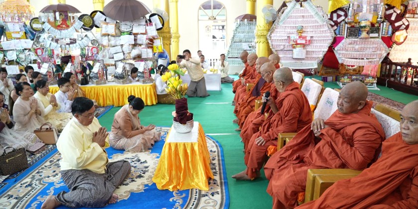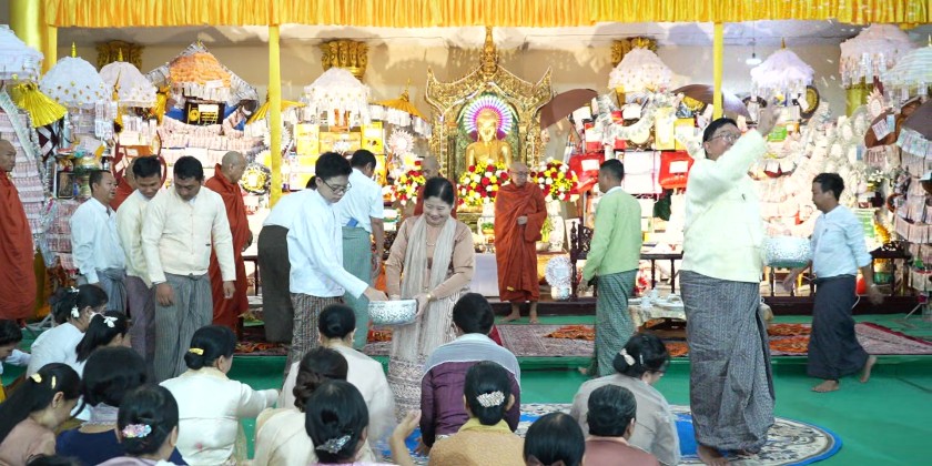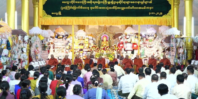 The ceremony, where the Magway Region Government takes the lead and relevant departments and donors collectively offer Kathina robes, accompanying offertories trees, and other donated items, is held annually as an unbroken tradition. This year marks the 38th occasion. It has been learned that the total value of the offered items and donated funds at this Collective Maha Kathina Robe Offering Ceremony amounted to 108.185 million Kyats.