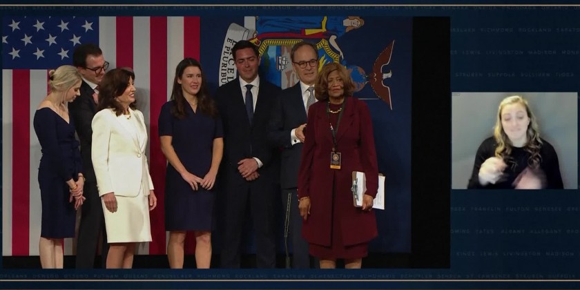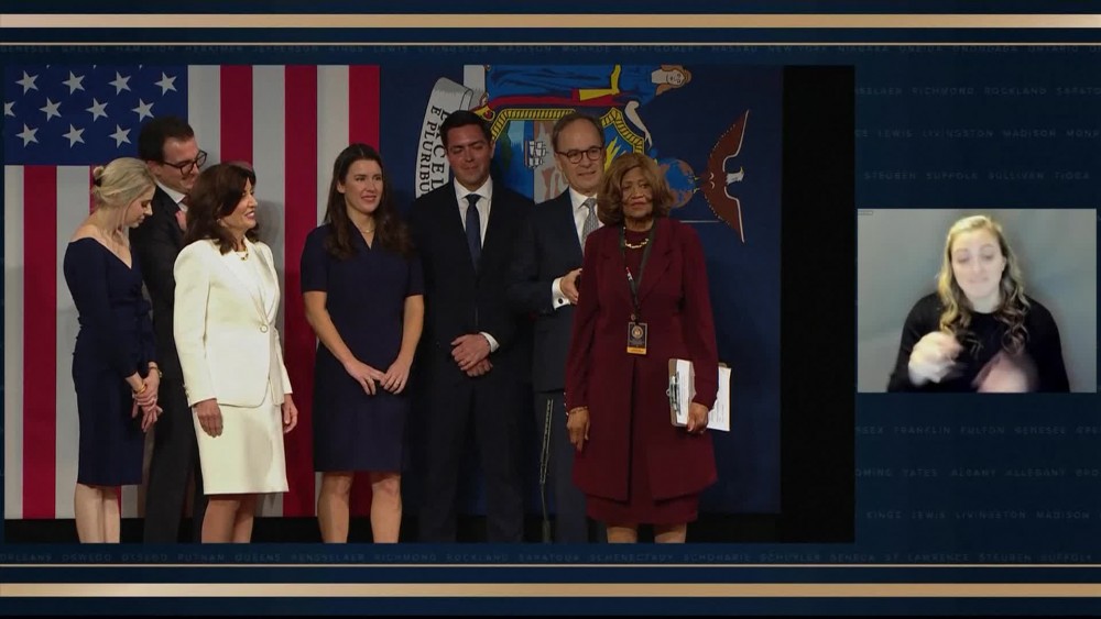 The Democrat, launching her term as the 57th governor of New York, said her goals were to increase public safety and to make the state more affordable. Hochul said she was "ready to take on the fight," adding that she "came here to make a difference."