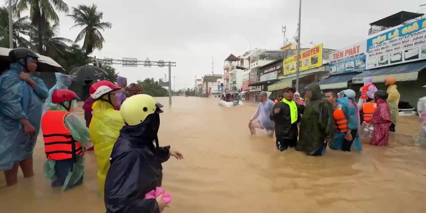 In Khanh Hoa Province, Viet Nam, over 300 officers and soldiers have been deployed to the flooded areas across the province since Wednesday night with rescue equipment, speedboats, life jackets and bringing essential supplies to affected citizens.