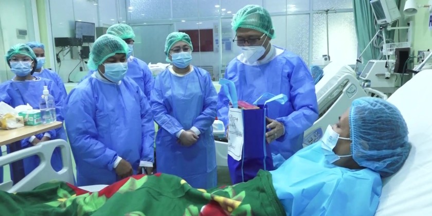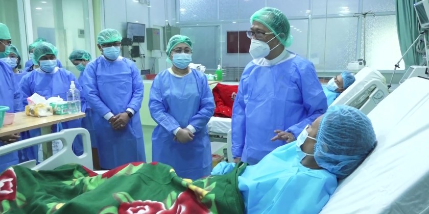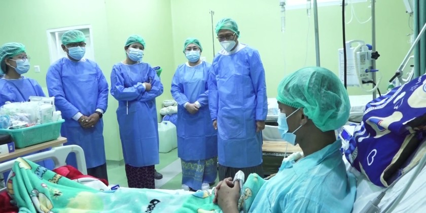 On the morning of October 22, Union Minister for Health Professor Dr. Thet Khaing Win, accompanied by responsible officials, met with the patients who underwent the second and third kidney transplant surgeries and their donors at the 1000-bed Nay Pyi Taw General Hospital.